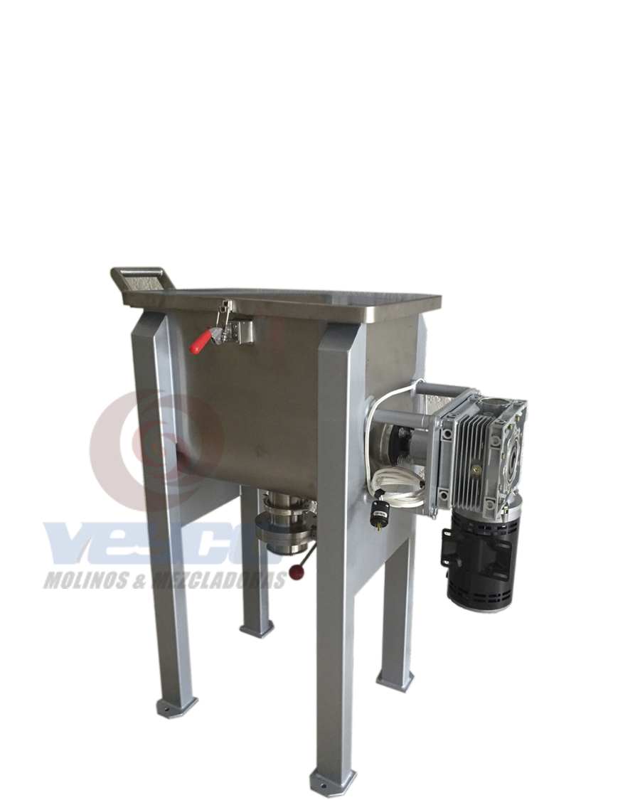 Este equipo se forma de una tina horizontal en forma de U y un mezclador de cinta alineado sobre un eje, el mecanismo de sucesión del equipo se refiere a que una de las cintas empuja lentamente los sólidos hacia atrás, mientras que la otra cinta los desplaza rápidamente hacia adelante, mueve los materiales radial y lateralmente para asegurar mezclas a fondo en tiempos de ciclo cortos. Los agitadores de cinta se utilizan para mezclas que estarán entre el 30 – 90 % de la capacidad nominal del mezclador, cuentan con dos formas de mezclar los productos: