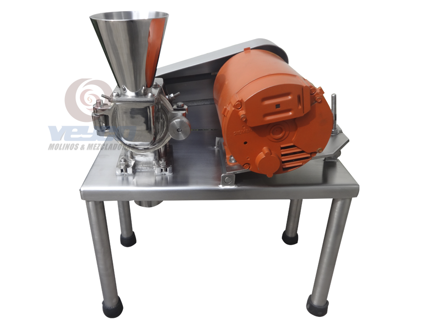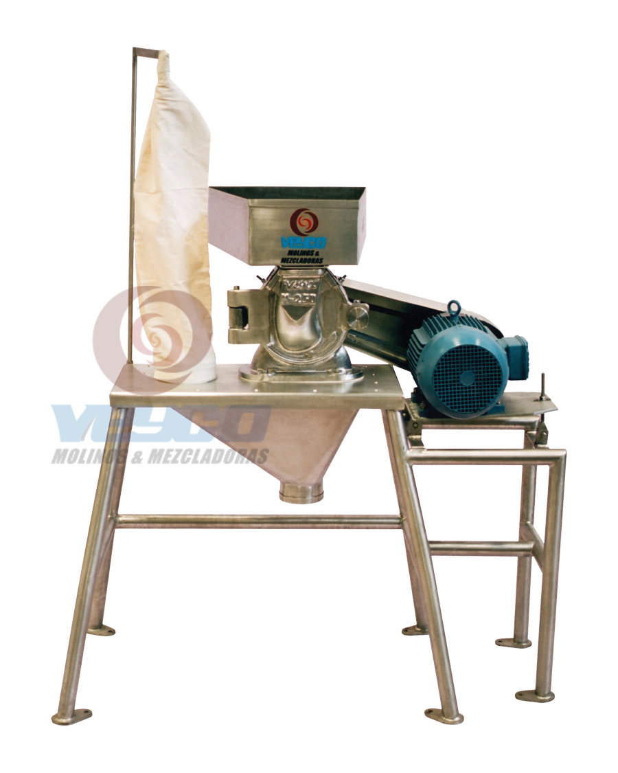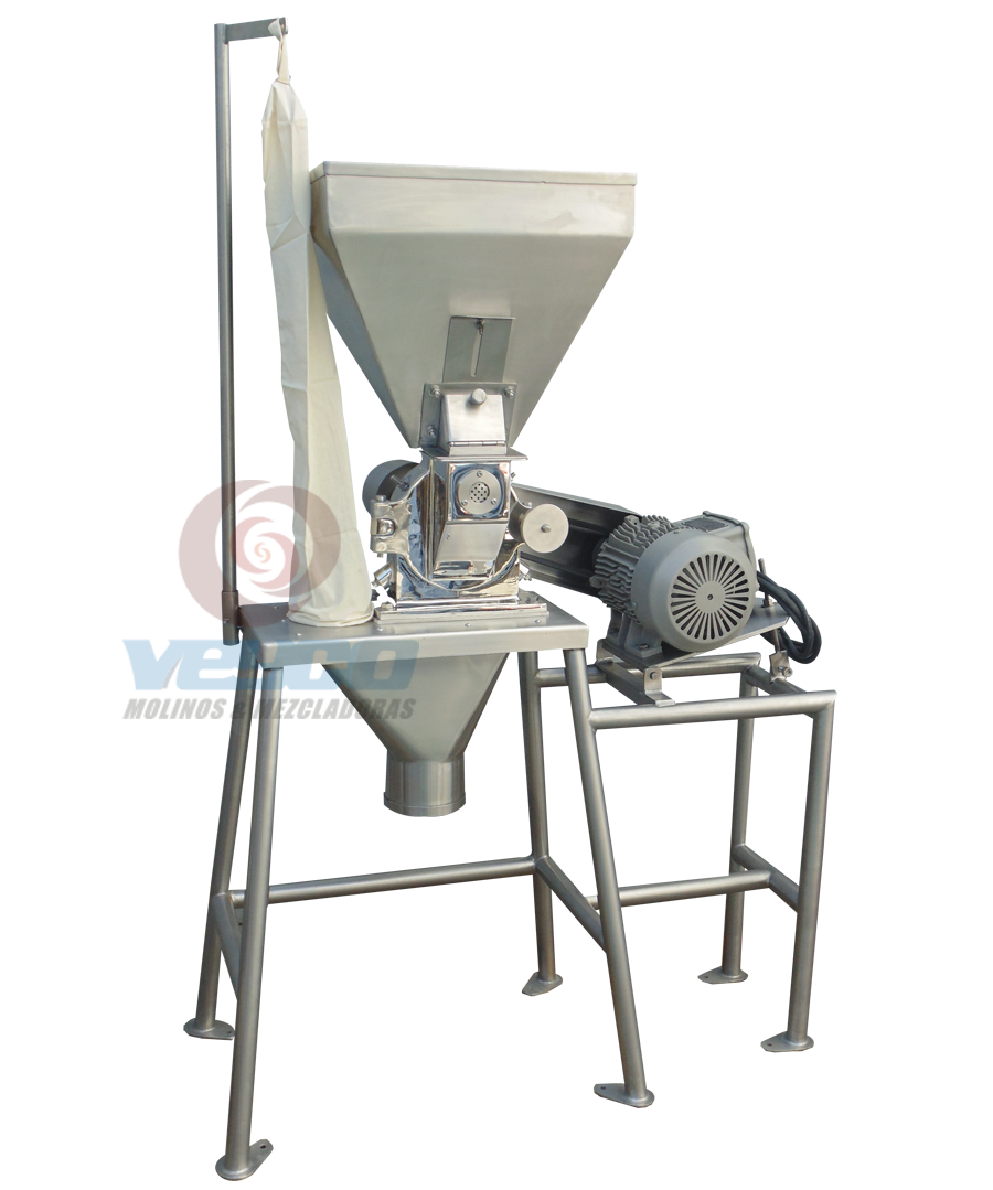 Los pulverizadores VEYCO son molinos con un sistema de molienda de alta velocidad diseñados para un funcionamiento continuo a velocidades hasta 6,000 RPM. El producto puede ser alimentado por medio de una tolva de carga y dosificadores de alimentación, una entrada de succión, un conjunto de inyectores o puede ser alimentado por gravedad, dependiendo de sus propiedades. La trituración es el resultado de que el producto de alimentación impacta contra la turbina y el revestimiento instalado en la cubierta de la carcasa del molino, dicho producto sale a través del cuerpo hermético atraves de la criba o malla.Los MOLINOS VEYCO pulverizan toda clase de productos:
